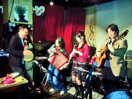 そんな超初心者ラフェスタセッションの前の日は、な、な、なんと、あの飲み屋での他愛無い妄想が生み出した謎のバンド「ちんどん屋」が初イベントLIVEデビューしました~。パチパチパチッ♪