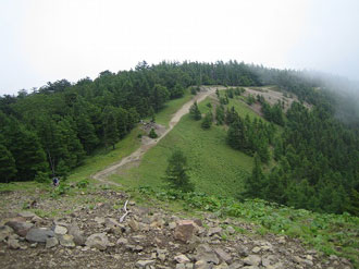 あそこが山頂じゃないけどね、山小屋まではあと40分くらいかなぁ~。