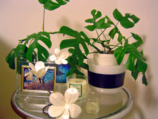 と言う事で、とりあえずの今回の収穫は写真のモンステラ用にと買ったガラスの鉢ひとつ。