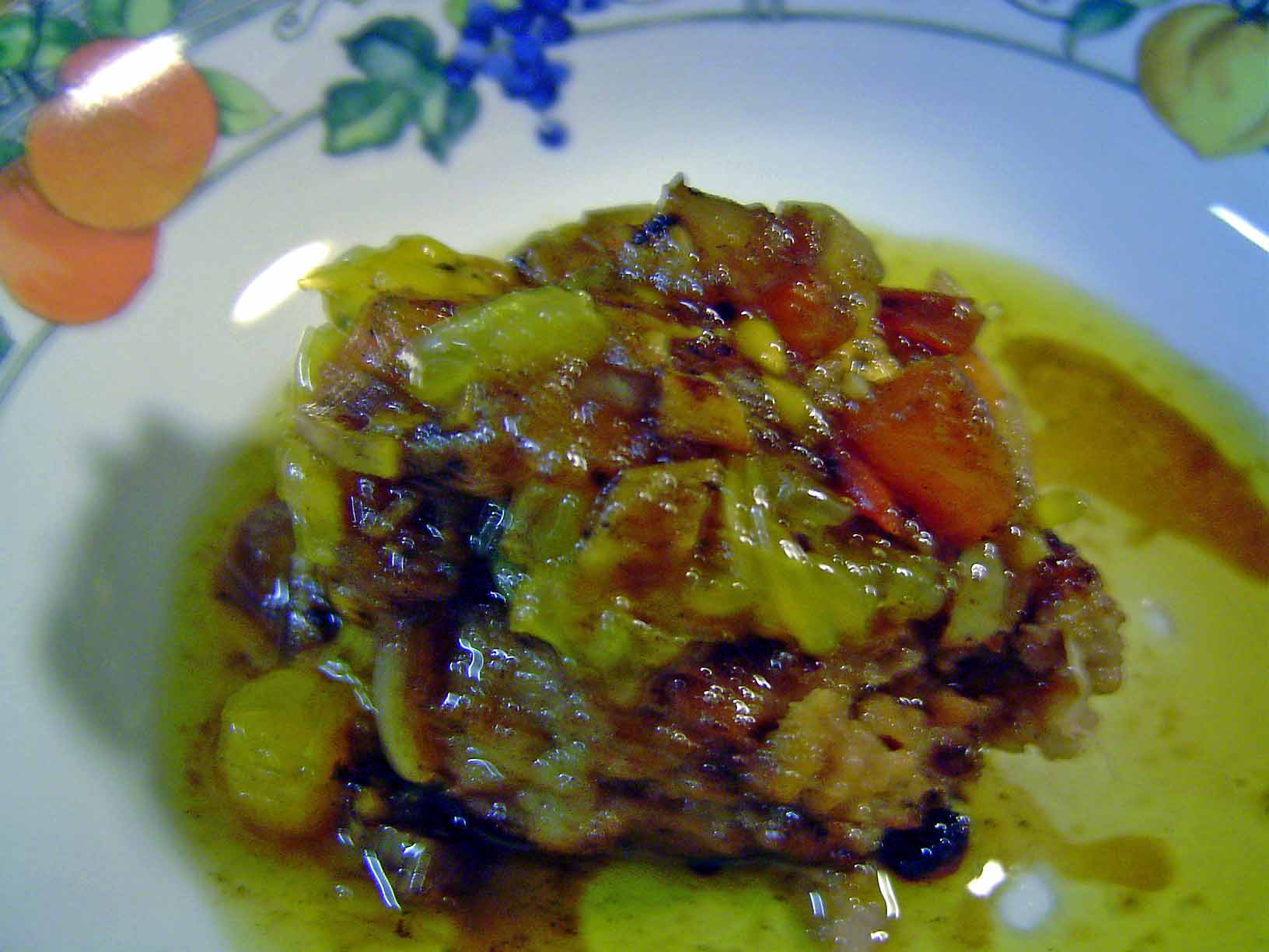 新たまねぎとトマトとみかんのソースのハンバーグ。