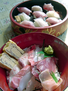 ←写真は、ここに行きたい!って思っていた「ばんや」の海鮮丼とお鮨。お鮨850円だよ~♪